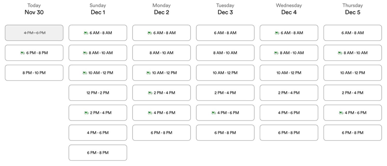 Traditional time-slot delivery systems use fixed capacity limits. For example, allowing 10 deliveries in a two-hour window. This doesn’t account for geography. If deliveries are close together, the driver finishes early (overcapacity). If deliveries are far apart, the driver may not have enough time to complete them all within the promised window.