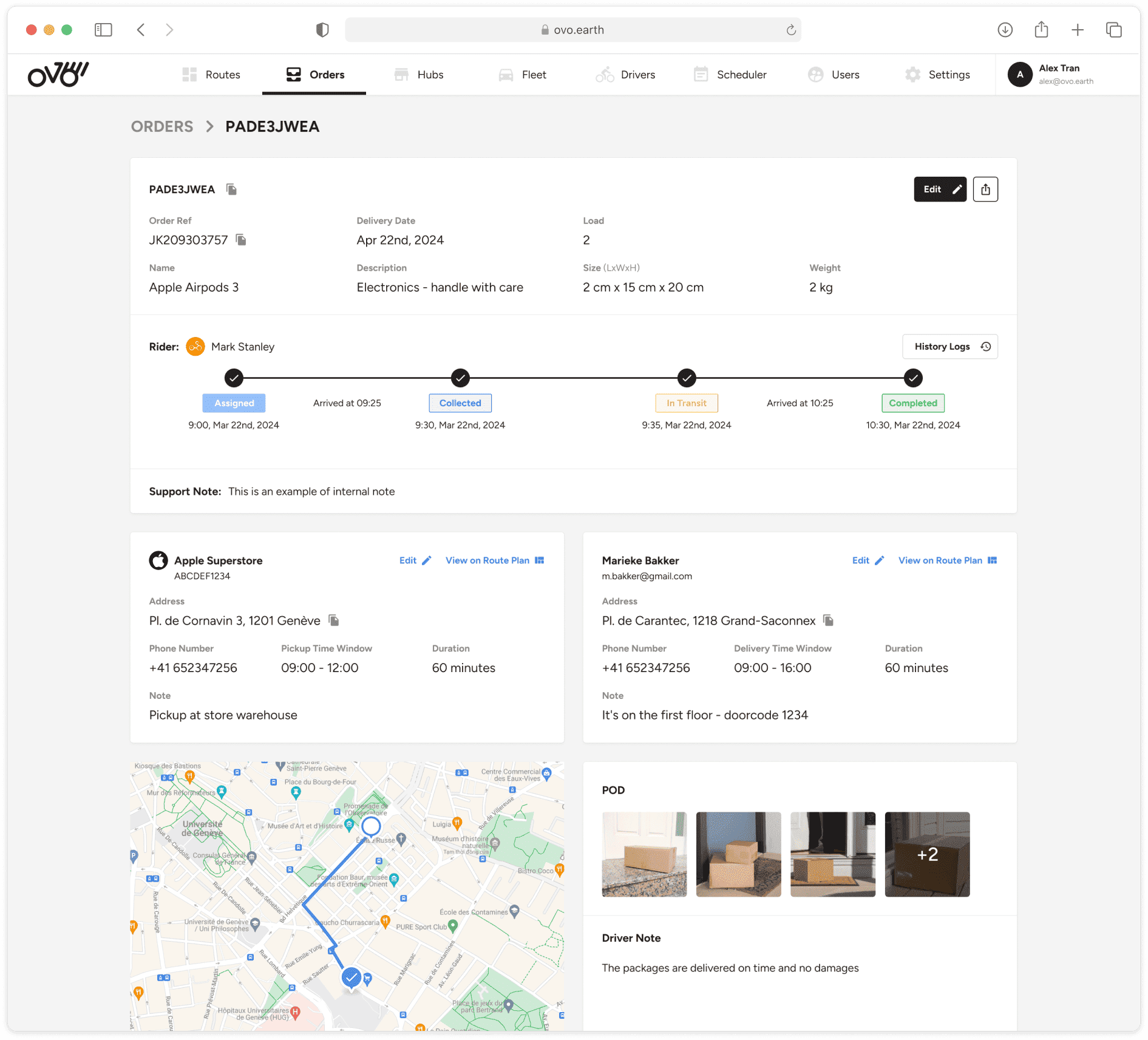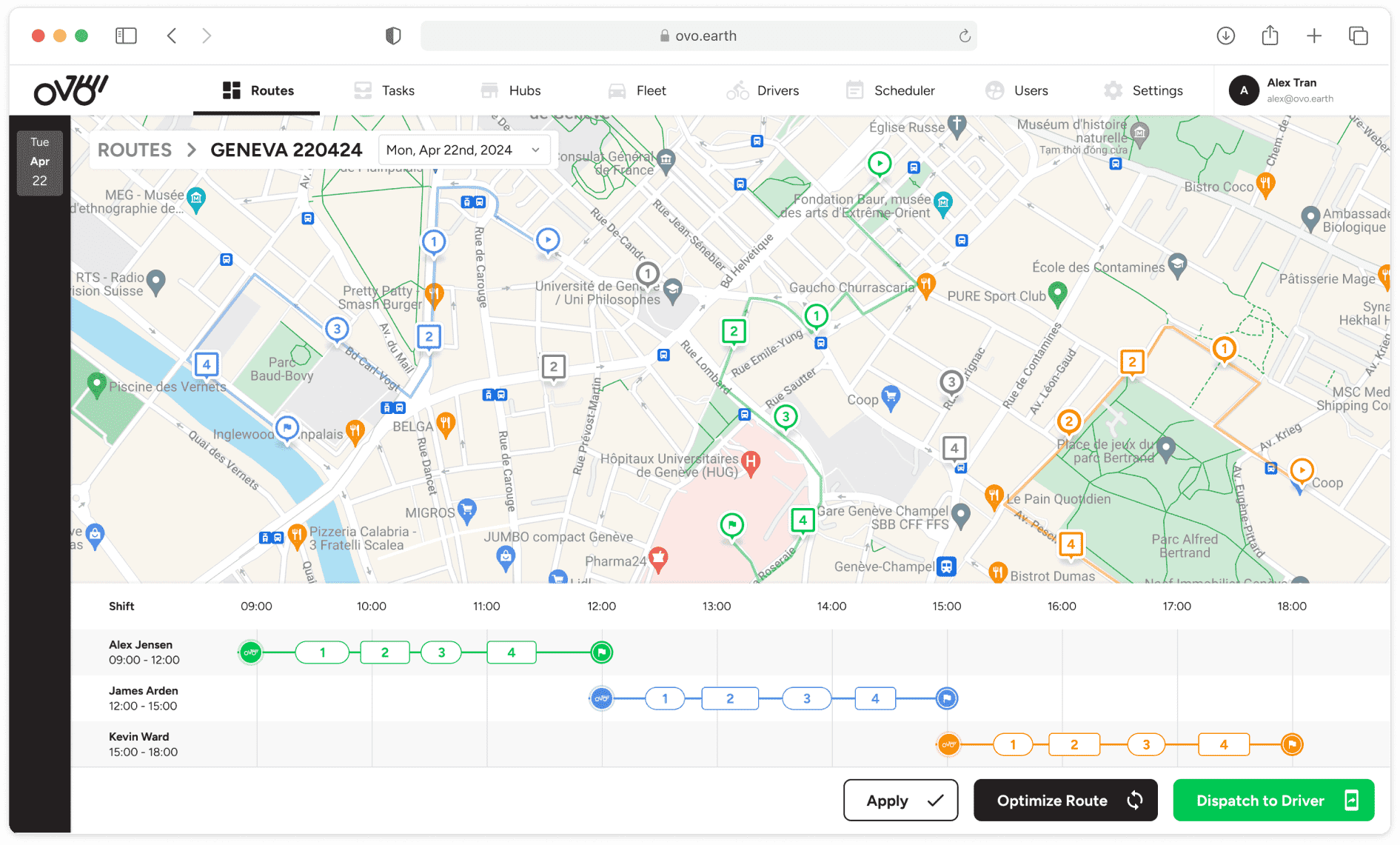 For OVO, route optimization is about more than just improving efficiency or cutting costs - it’s a critical component of their commitment to environmental sustainability. Their clients include a wide range of Swiss small and medium-sized businesses, such as local retailers, pharmacies, florists, e-commerce brands, and restaurants, all seeking to lower their carbon footprint while enhancing delivery performance.